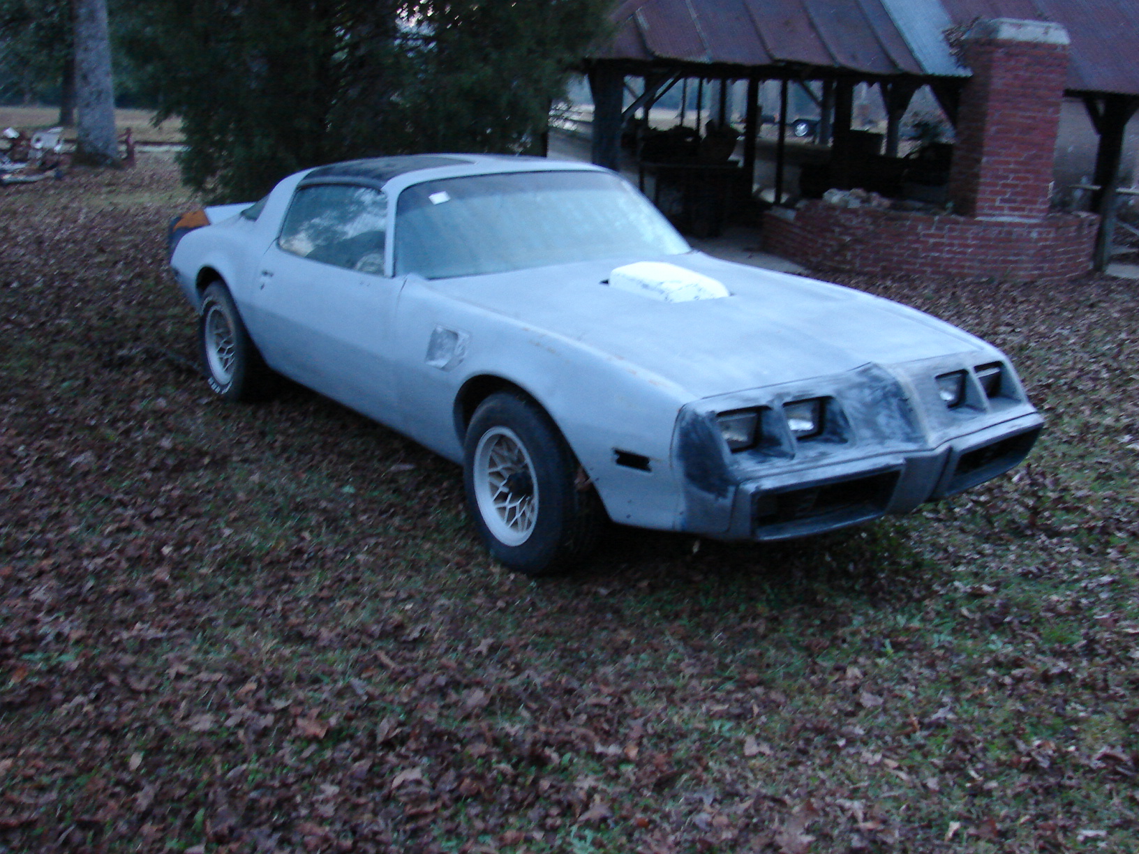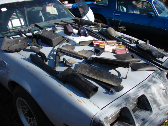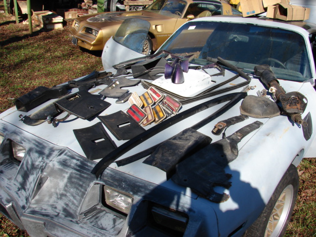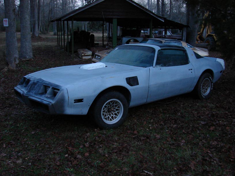 1979 Pontiac Trans Am SE: W72 400 4 speed Y84 bandit trans am. PHS documented, one of 1107 built, ps, pb, ac, pw, tilt, t-tops, deluxe black interior, WS6. Correct fresh PWH engine w/6X-4 heads. 17059263 carb, correct orig BW super T10 Trans, correct round stick hurst shifter, 4 wheel disc brakes, gold 8 inch snowflakes, solid car in primer, uncut shaker, only rust found are a few small hole's near emergency brake cable in drivers floor pan. Car was disassembled for resto, stripped to metal and primed. good gaps, doors open and close well, No rust in quarters, excellent rear tail panel, Wheel spoilers and rear bumper are included as are NOS grills and armrests. New windshield, clutch, hoses, belts, alternator, cables, distributor and wires, no miles on fresh engine. no carpet, nice black deluxe vinyl seats, nice door panels, decent console, nice interior plastic, dash cracked. steering wheel in need. Solid southern Running car, sold new at Plaza Pontiac in Tucker Ga.